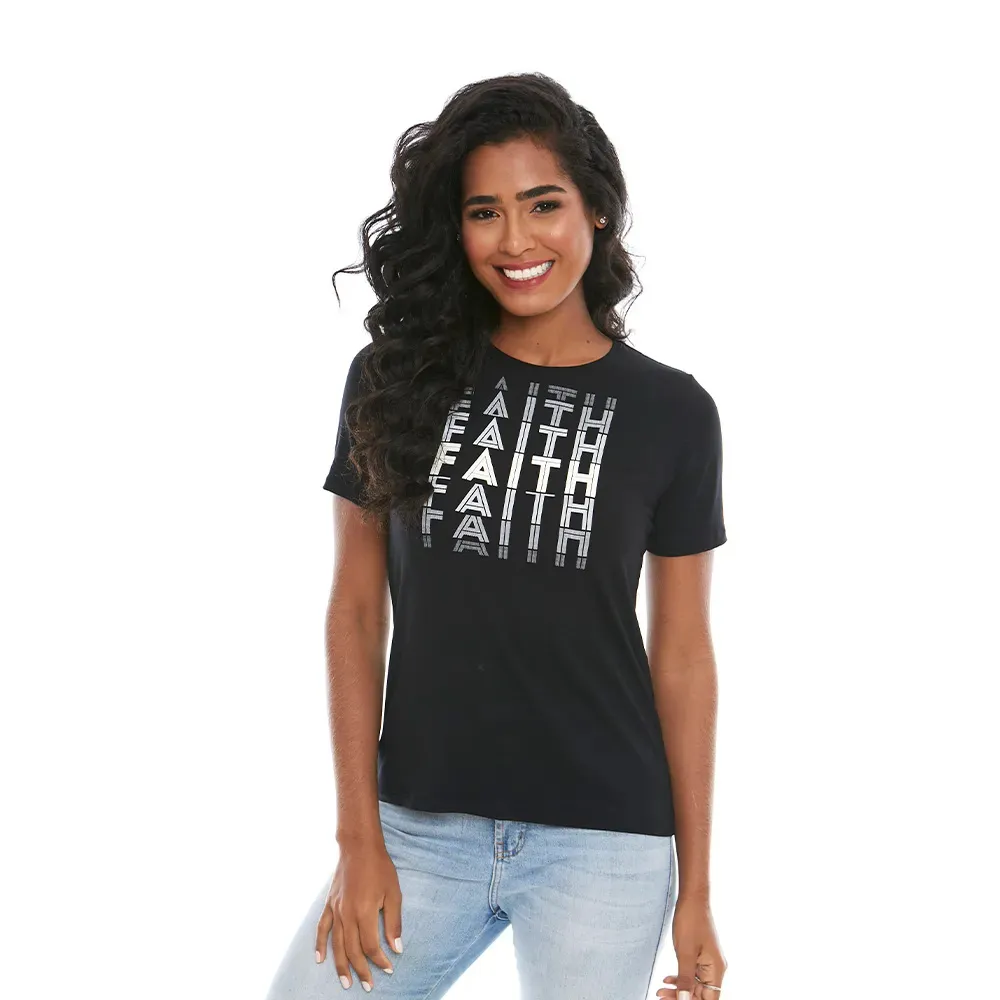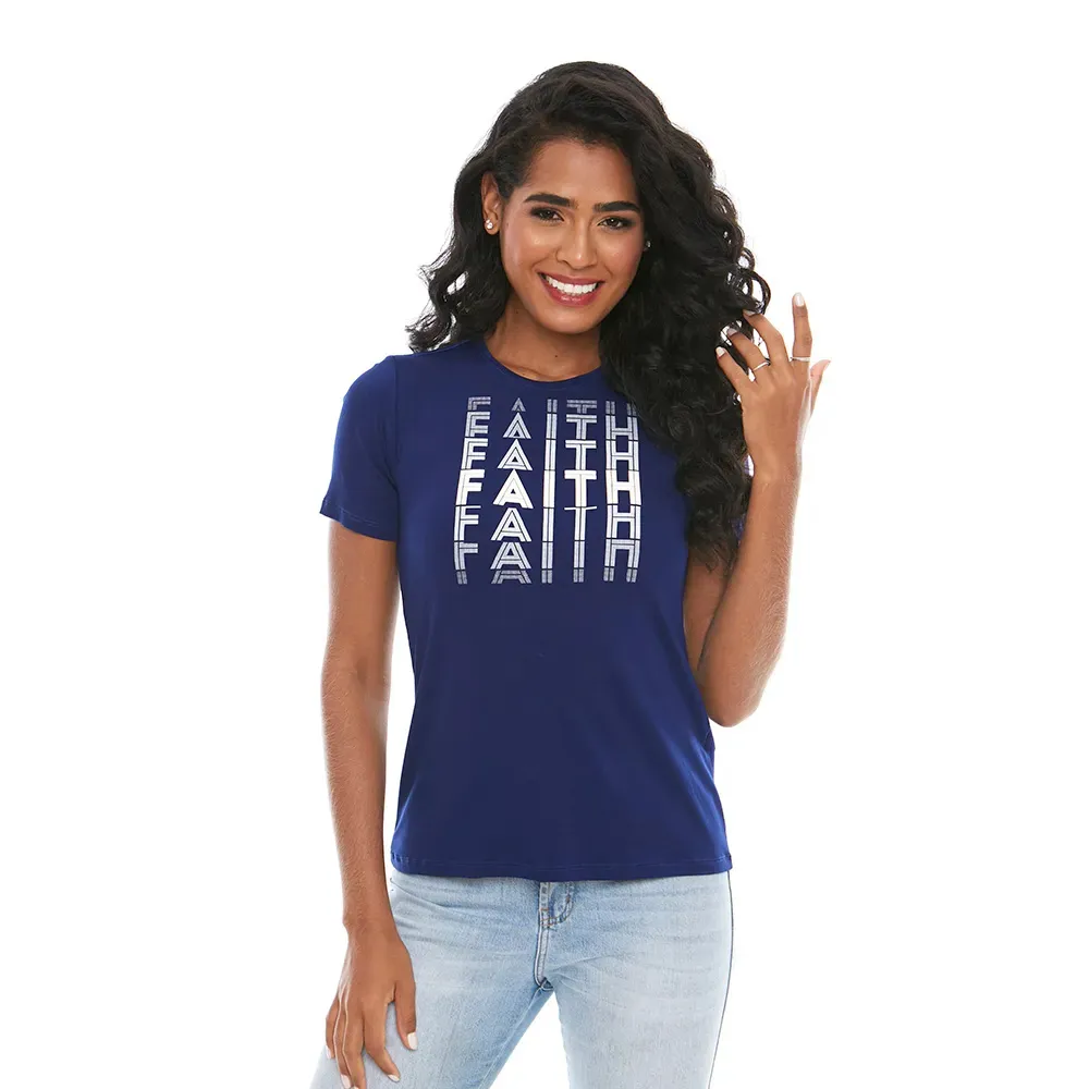 Camiseta com mensagem devocional Faith (Fé) com delicada aplicação em silk para um look mais sofisticado e combinações lindas. Nas cores preta, cor de rosa e azul em tecido macio de textura suave e confortável. A camiseta devocional é a opção perfeita para quem acredita na ação divina por meio dos detalhes em nosso cotidiano. Se vista daquilo que você acredita. Vista-se de amor. -Pode haver variações de medidas nas peças de até 2 cm, na largura e comprimento. -A depender da malha utilizada no processo de confecção, pode haver variação no tamanho da peça para garantir melhor vestibilidade. -As estampas podem conter fissuras apresentadas nas mangas e nas laterais, devido a técnica de estamparia utilizada.