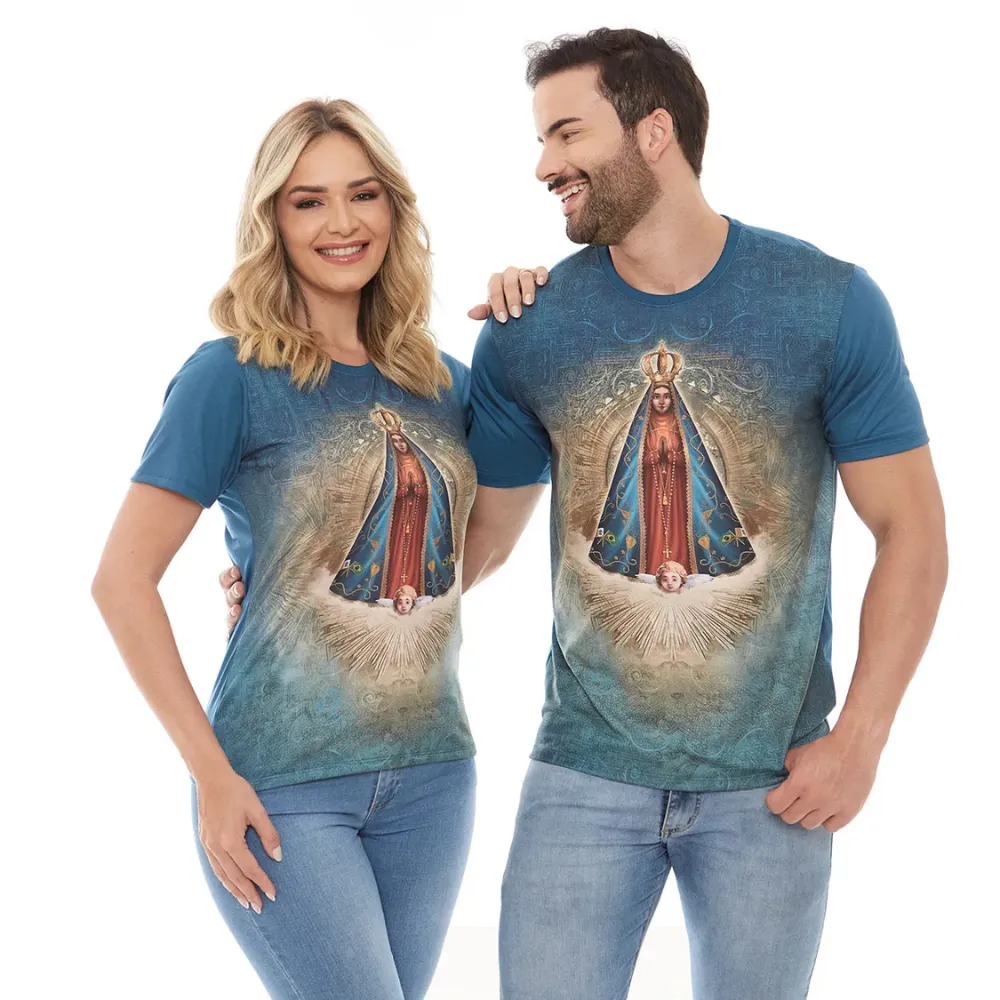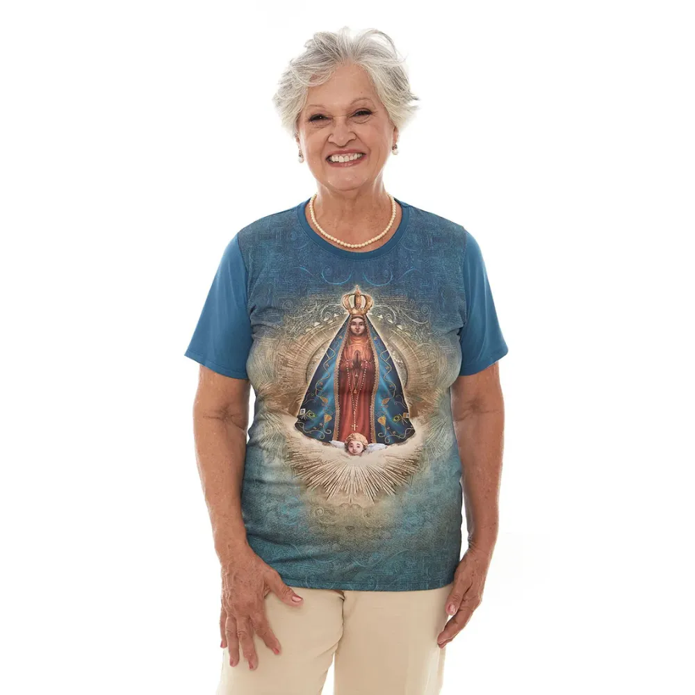 Baby Look católica Nossa Senhora Aparecida na cor verde petróleo, elaborada em tecido de altíssima qualidade e de um conforto surpreendente. O destaque desta peça é a imagem milagrosa da Padroeira do Brasil. Perfeita para vestir o casal com amor e devoção. Disponível na versão feminina e masculina. Vista-se de amor. Use Ágape. Pode haver variações de medidas nas peças de até 2 cm, na largura e comprimento. A depender da malha utilizada no processo de confecção, pode haver variação no tamanho da peça para garantir melhor vestibilidade.