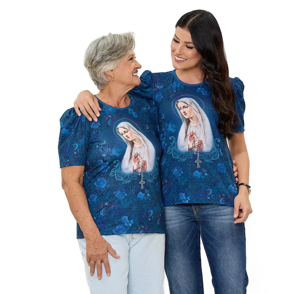 Conforto, devoção e um toque de elegância com a proteção de Nossa Senhora de Fátima! Na belíssima e delicada cor azul, com detalhes de estampa floral, a peça de Nossa Senhora de Fátima traz ainda como diferencial a manga princesa para um visual mais elegante e permite todos os movimentos com mais liberdade. Modelagem versátil, ideal para compor looks casuais cheios de fé. Disponível na versão feminina e infantil para vestir tal mãe e tal filha. Vista-se de amor. Use Ágape. Seja para você ou para presentear alguém especial, escolha a qualidade Ágape, onde estilo e fé se encontram em cada detalhe. *Pode haver variações de medidas nas peças de até 2 cm, na largura e comprimento. A depender da malha utilizada no processo de confecção, pode haver variação no tamanho da peça para garantir melhor vestibilidade.