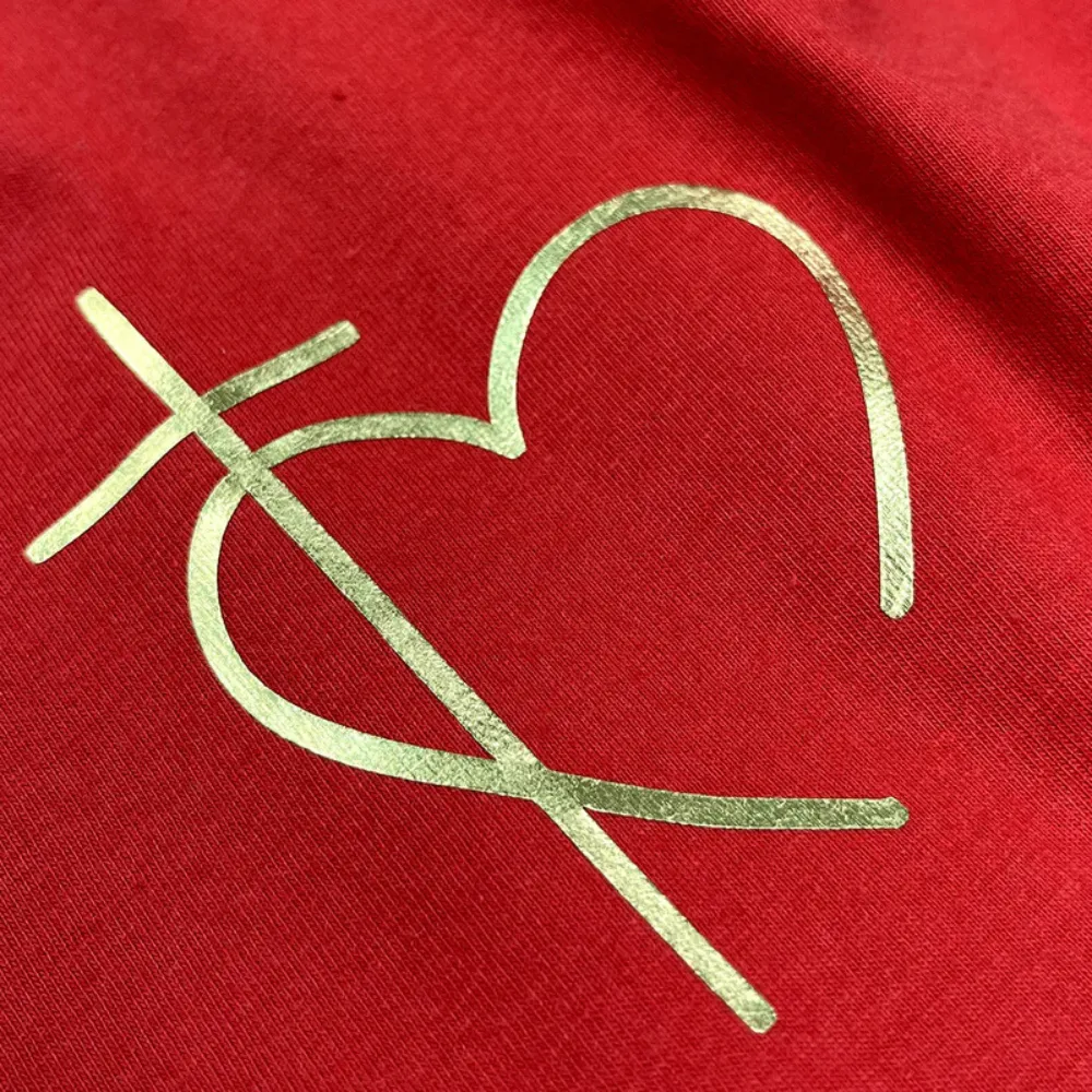 Camiseta Feminina Vermelha Cruz Coração Minimalista