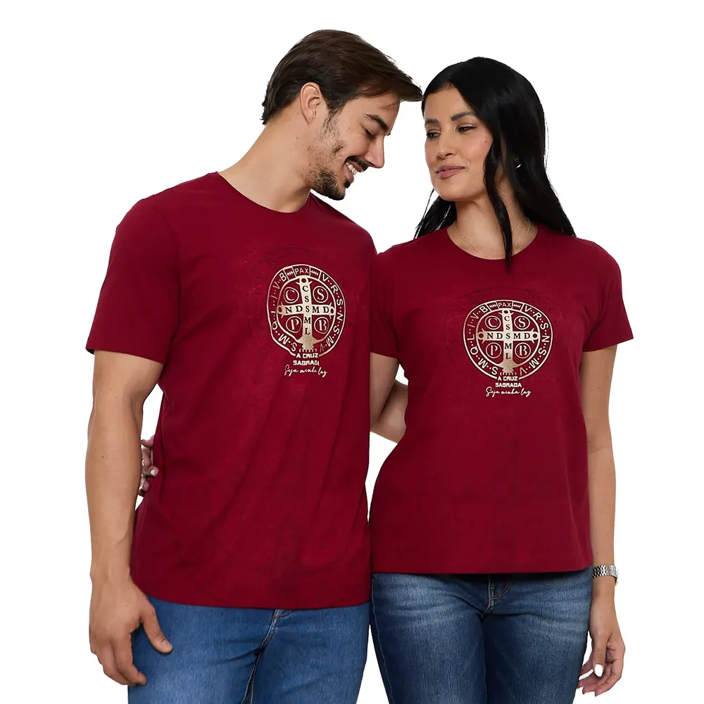 Camiseta Medalha de São Bento Bordô