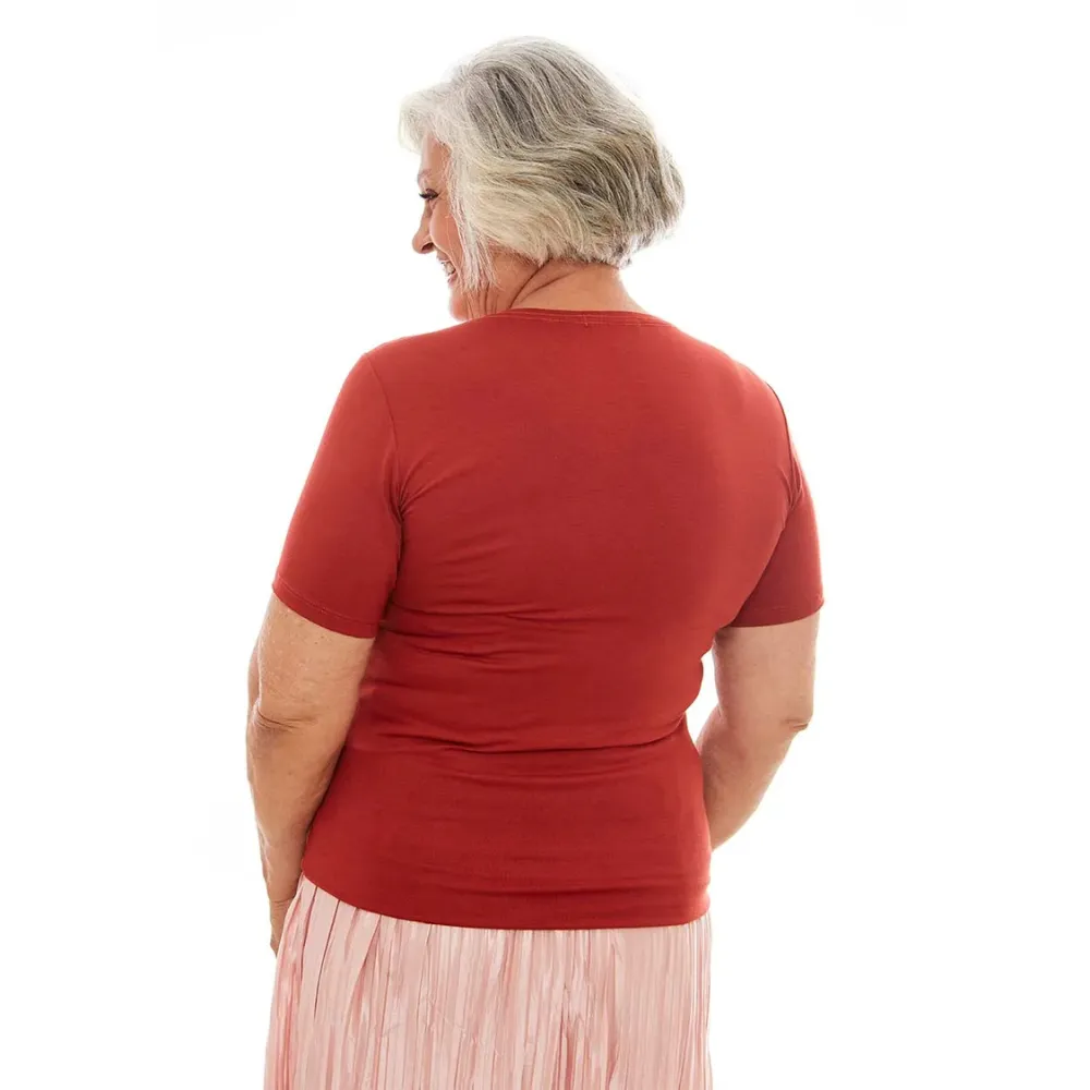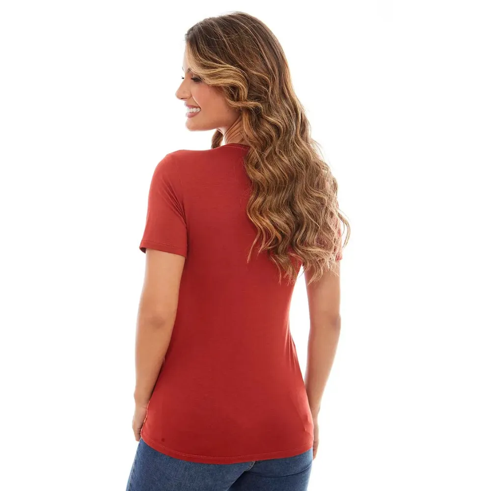 Baby look de Nossa Senhora Aparecida com belos detalhes enaltecendo a Virgem Maria. Na moderna cor terracota em malha fresca e confortável é uma peça estampada que surpreende pelos detalhes delicados e imagem majestosa. Perfeita para vestir com modéstia e elegância em todos os momentos.ais, devido a técnica de estamparia utilizada.